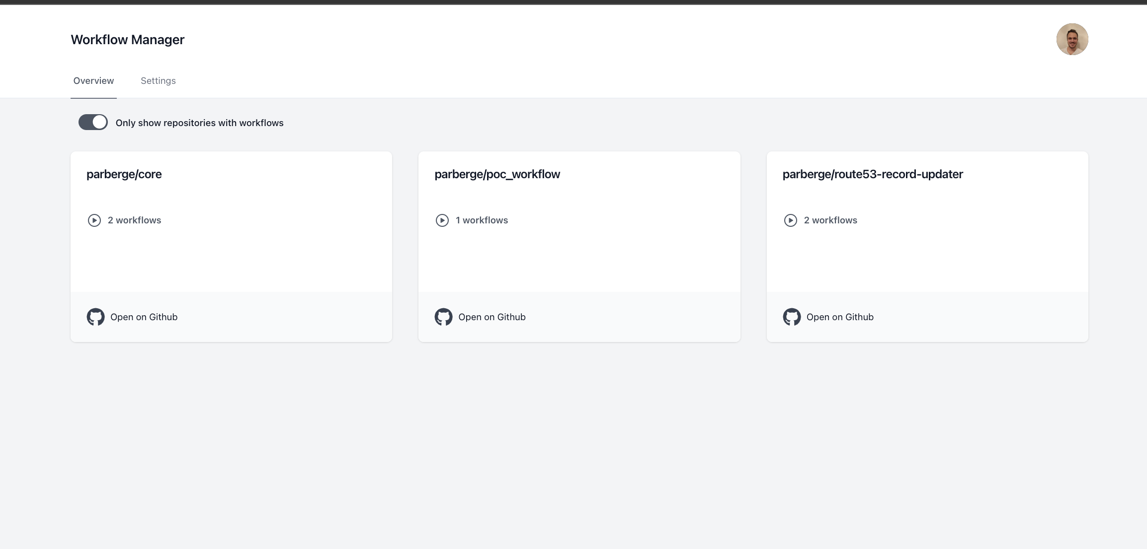 workflow manager dashboard Workflow Manager is the result of an innovation week, or hackweek as we at Codelabs call it. It's a solution for scheduling workflows (a.k.a workflows) in Github.